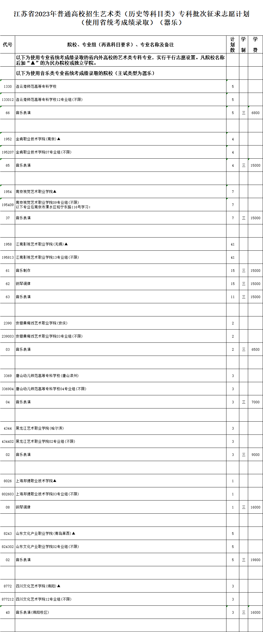 江苏省2023年普通高校招生体育类、艺术类及定向培养军士专科批次征求志愿计划