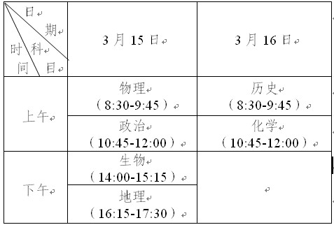 我省2014年普通高中学业水平测试必修科目考试时间安排如下: